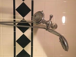 Mount hand shower with holder. If the diverter assembly will not hold the hand shower upright, tighten the hex nut at the connection to the shower arm. Shower arm diverter in brilliance stainless. Dimensions are for reference only. E delta reserves the right (1) to make changes in specifications and materials, and (2) to change or discontinue models, both without notice or obligation.